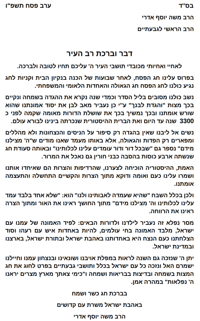 הרה"ג משה יוסף אדרי שליט"א – שאלות ותשובות פסח תשפ"ו